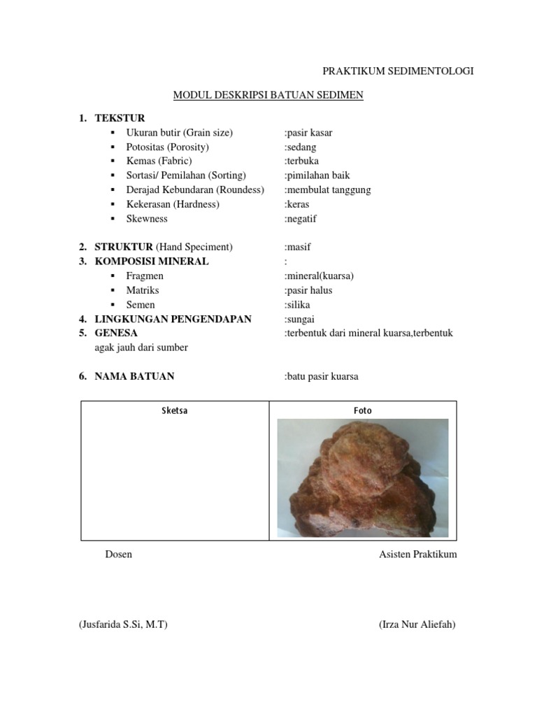 Faid Muhlis Deskripsi Batuan Sedimen Praktikum Petrologi
