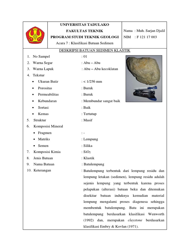 Acara 7 Klasifikasi Batuan Sedimen Pdf